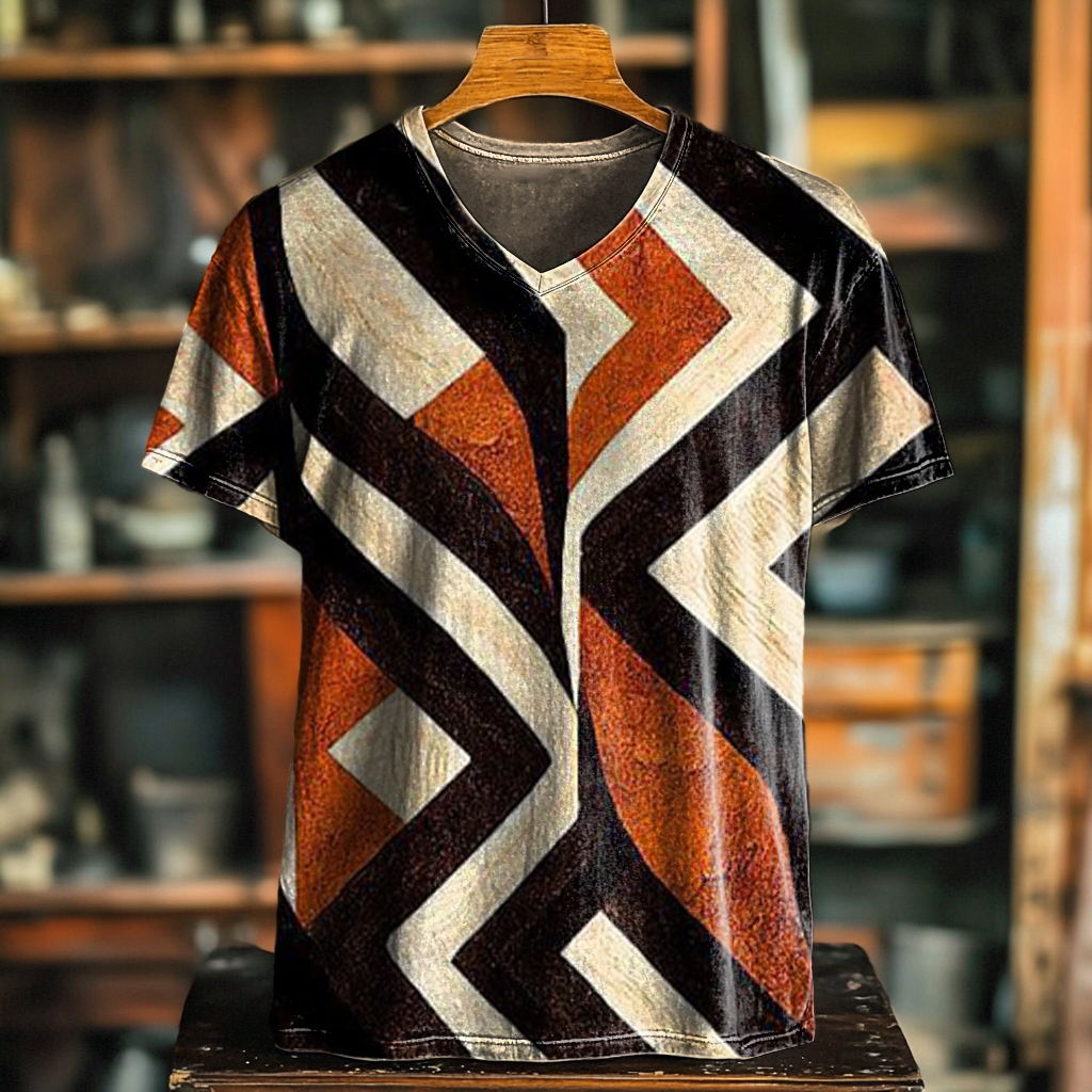 Men's Art Painting Ethnic Style Retro Print V-Neck Short Sleeve