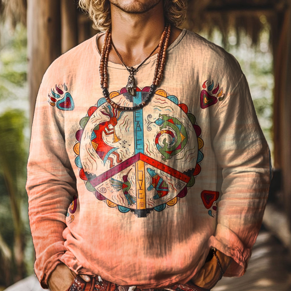 Men's Art Painting Hippie Ethnic Style Retro Print Round Neck Long Sleeve