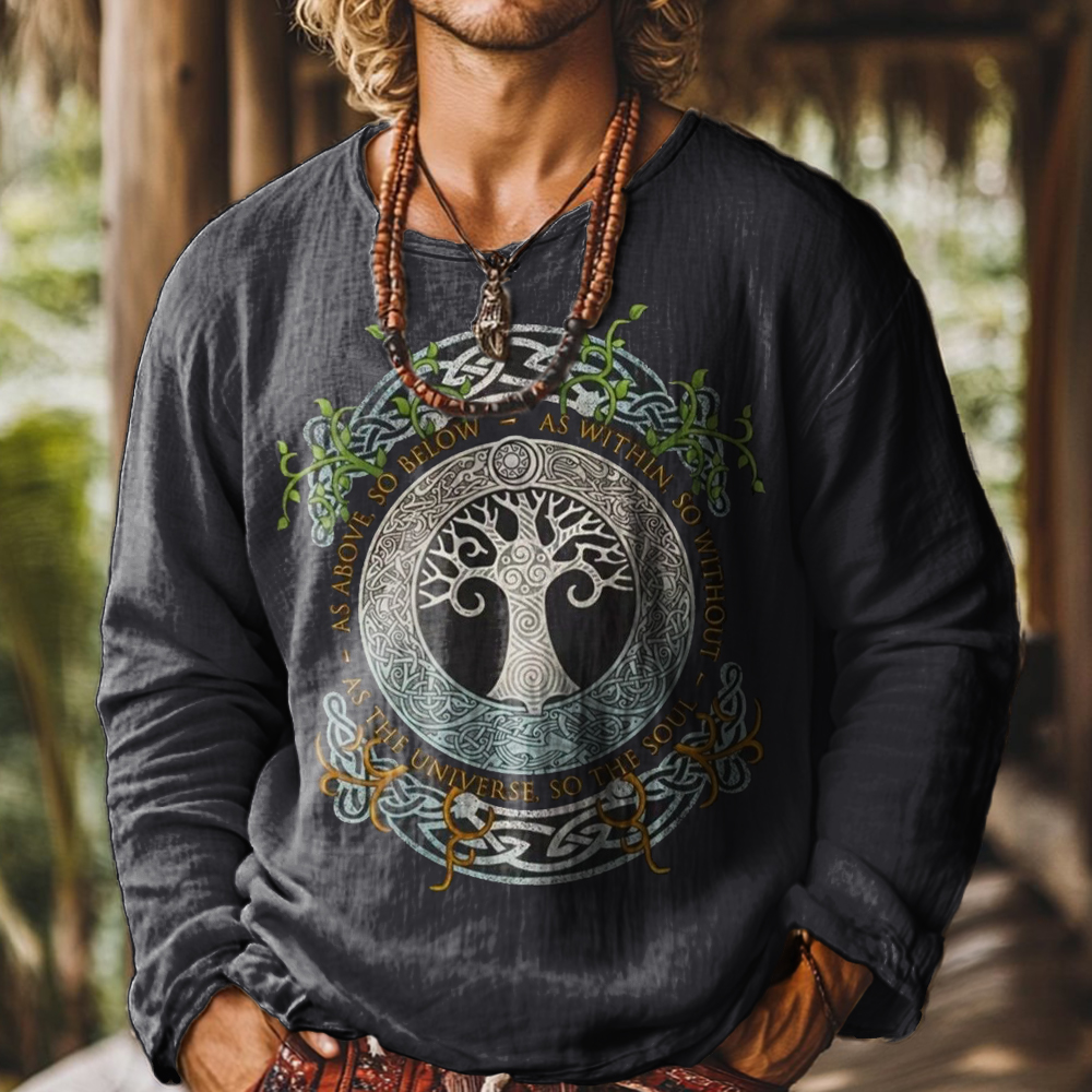 Men's Art Painting Tree of Life Gradient Retro Print Round Neck Long Sleeve