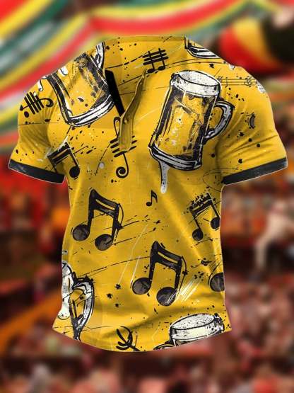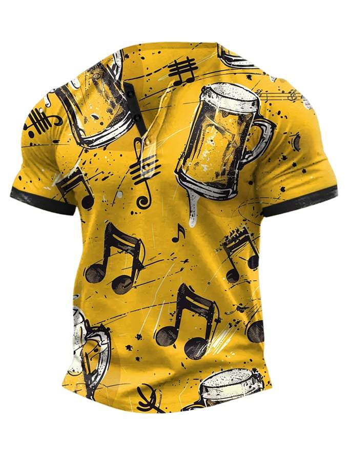 Men's Beer Music Print Henley Neck T-Shirt