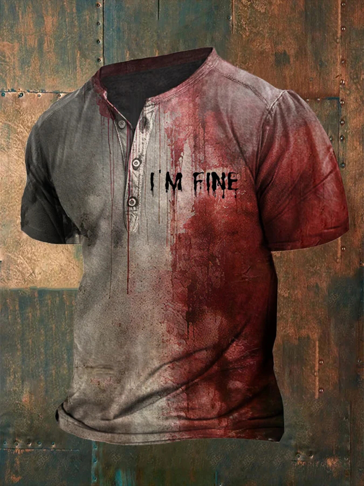 Men's Bloody I'm Fine Halloween Print Henley T-Shirt