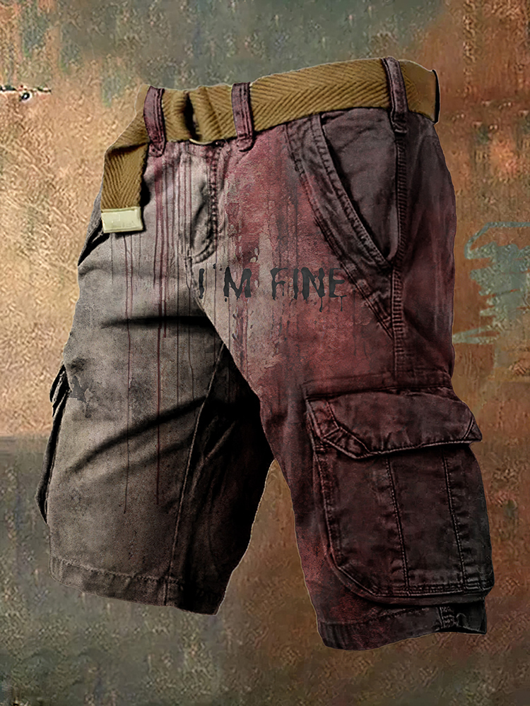 Men's Bloody I'm Fine Halloween Print Pockets Shorts
