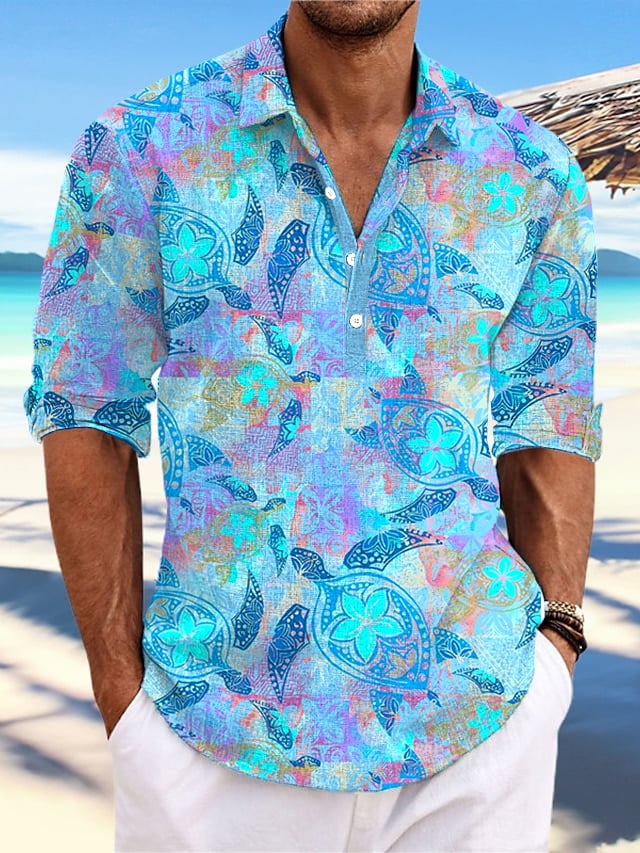 Men's Casual Hawaiian Print Lapel Shirt