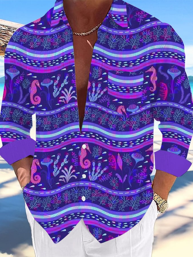 Men's Casual Hawaiian Print Lapel Shirt
