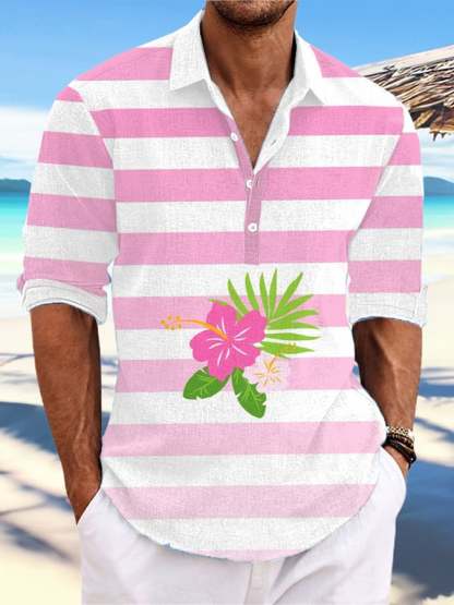 Men's Casual Hawaiian Print Stand Collar Shirt