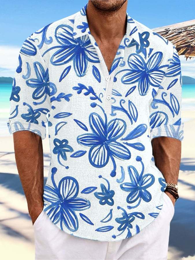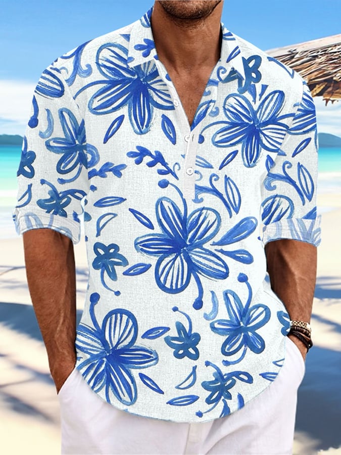 Men's Casual Hawaiian Print Stand Collar Shirt