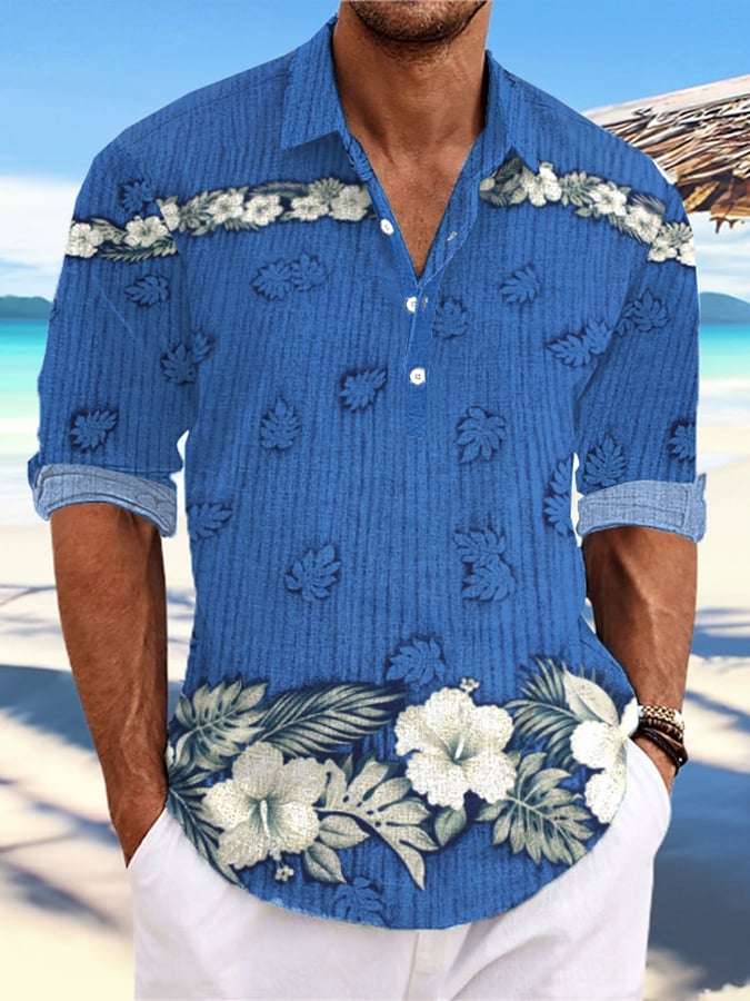 Men's Casual Hawaiian Print Stand Collar Shirt