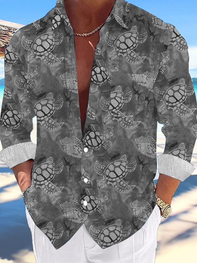 Men's Casual Hawaiian Turtle Print Lapel Shirt
