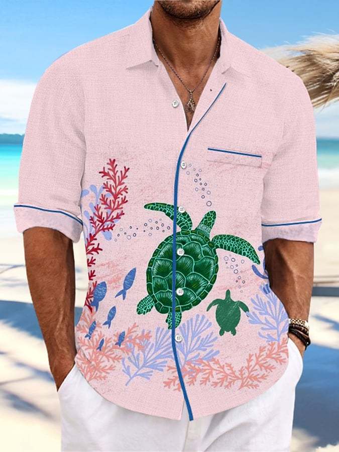 Men's Casual Hawaiian Turtle Print Lapel Shirt