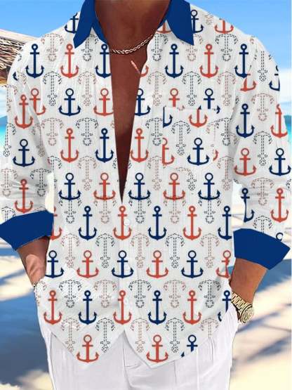 Men's Casual Nautical Lighthouse Print Lapel Shirt