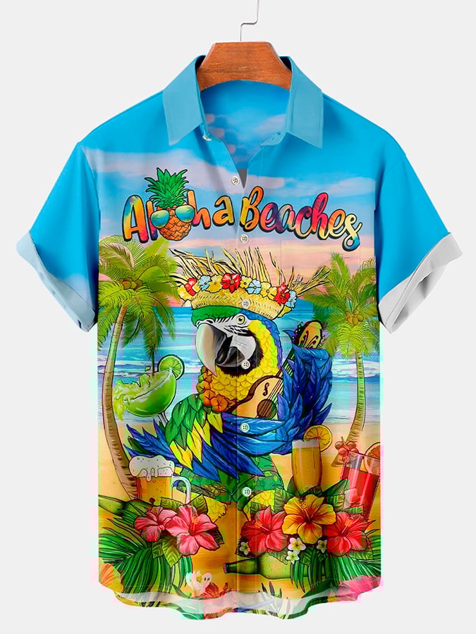 Men's Casual Vacation Hawaiian Parrot Print Shirt