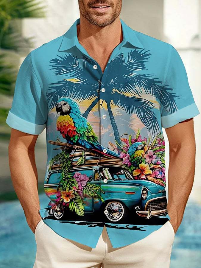 Men's Casual Vacation Hawaiian Parrot Print Shirt