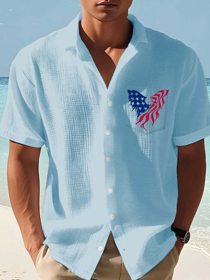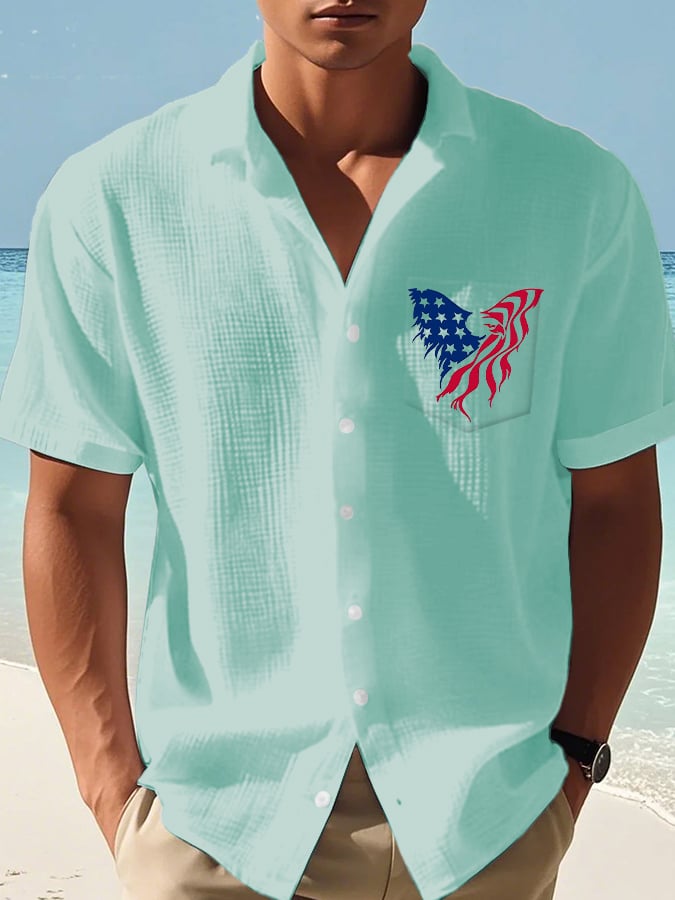 Men's Casual Vacation Independence Day Print Waffle Pocket Shirt
