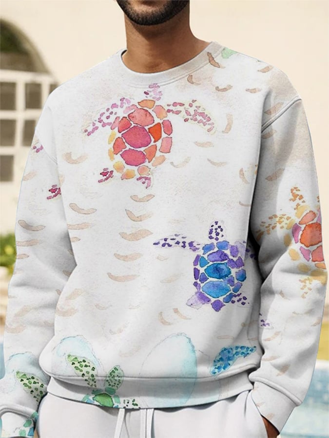 Men's Crew Neck Sweatshirt with Hawaiian Turtle Print