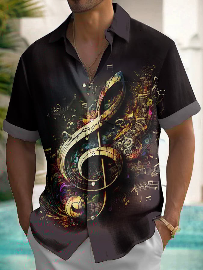 Men's Fashion Casual Art Music Print Shirt