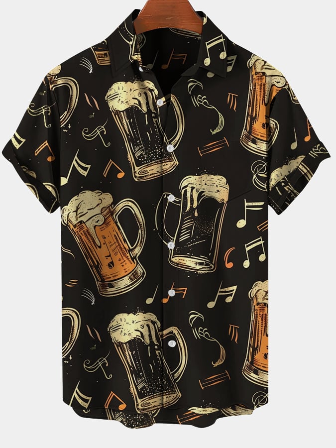 Men's Fashion Music Beer Note Print Short Sleeve Shirt