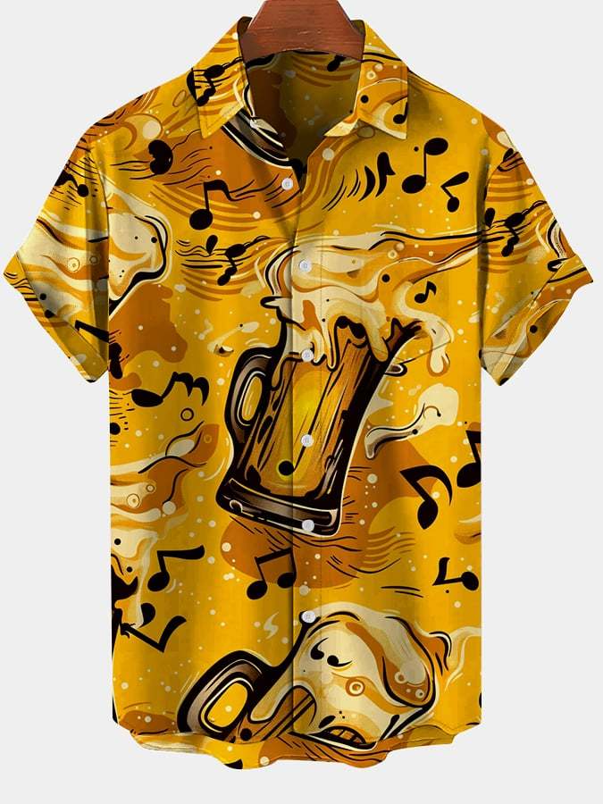 Men's Fashion Music Beer Note Print Short Sleeve Shirt