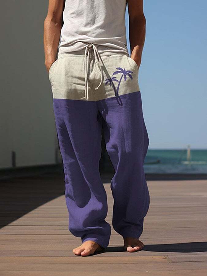 Men's Fashionable Resort Print Lace-Up Loose Casual Pants