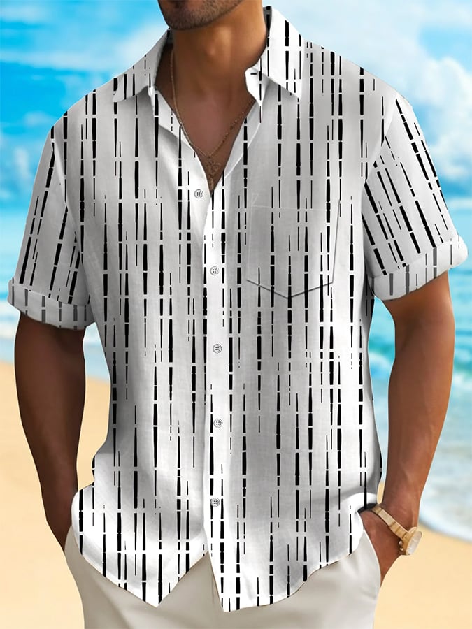 Men's Fashionable Striped Print Resort Casual Shirt (Pockets Included)