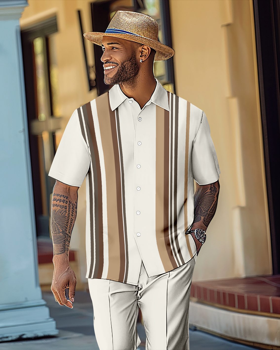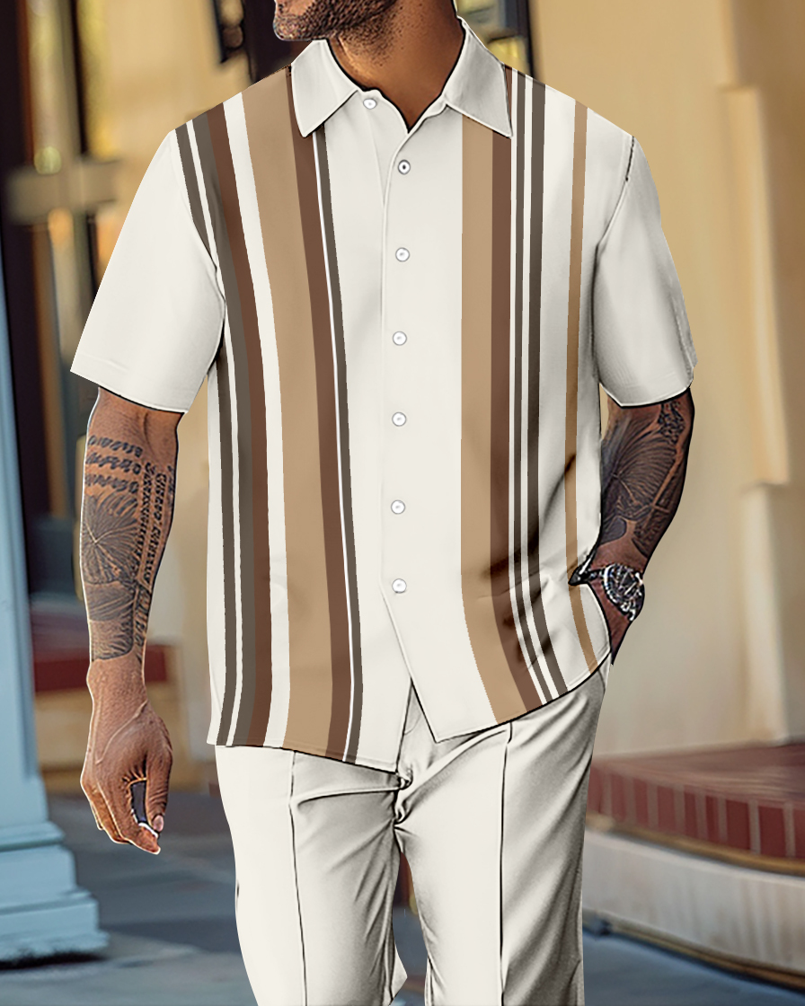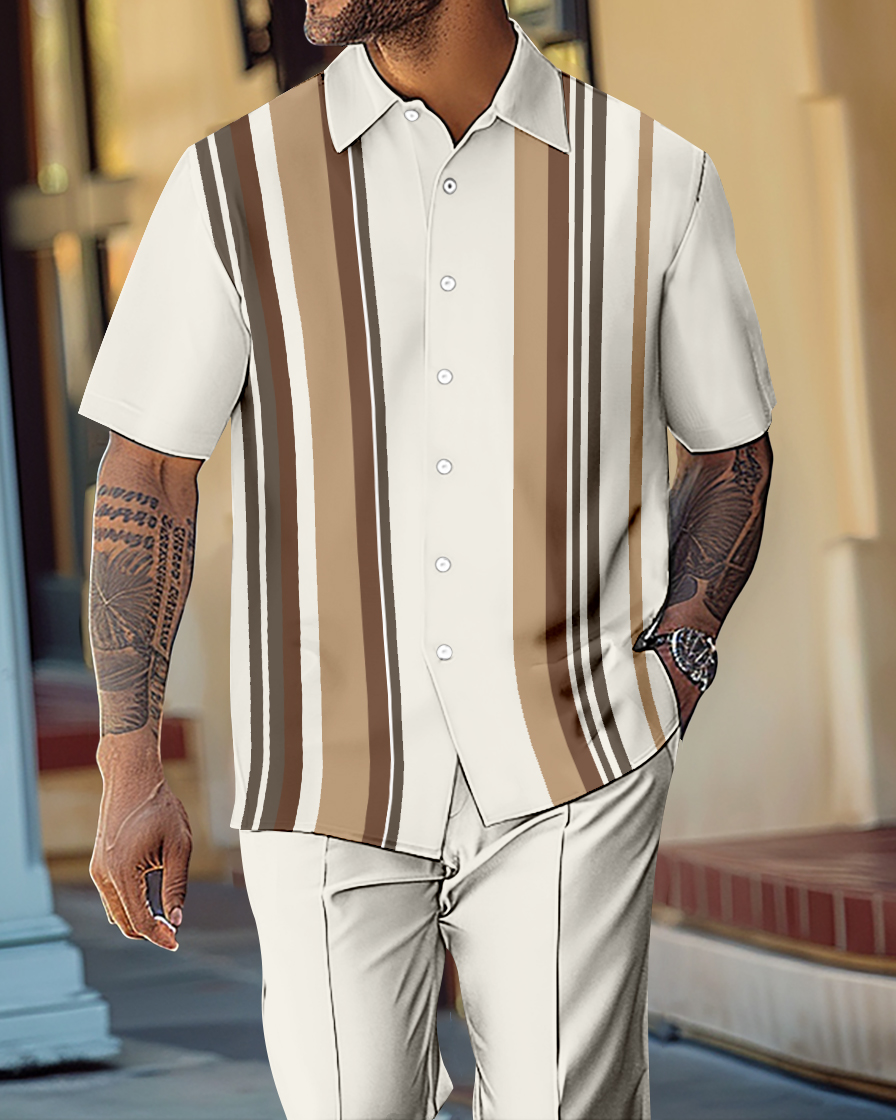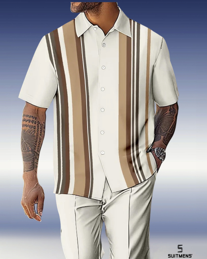 Men's Gorgeous Color Block Short Sleeve Shirt Walking Suit 1072