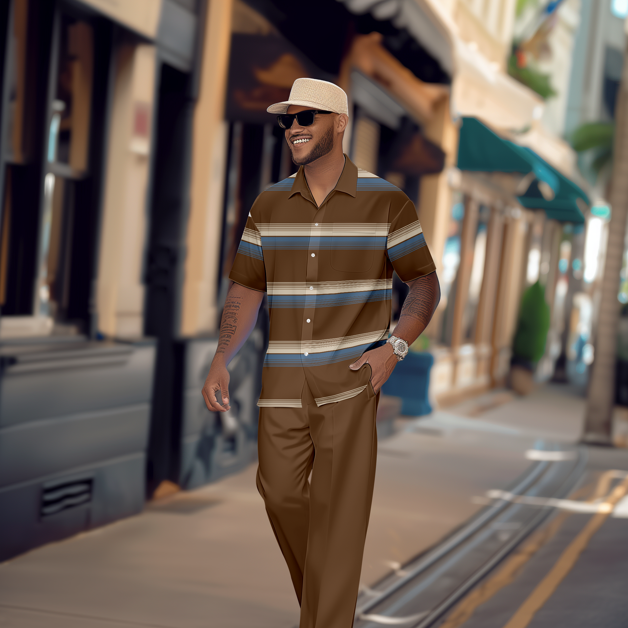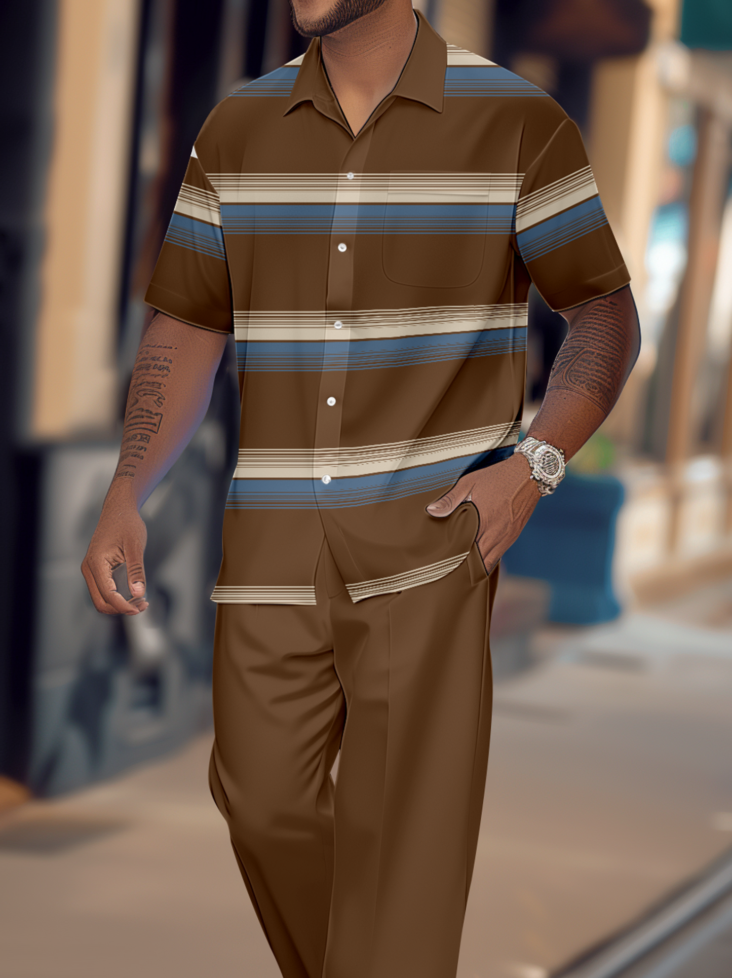 Men's Gorgeous Color Block Short Sleeve Shirt Walking Suit 1176