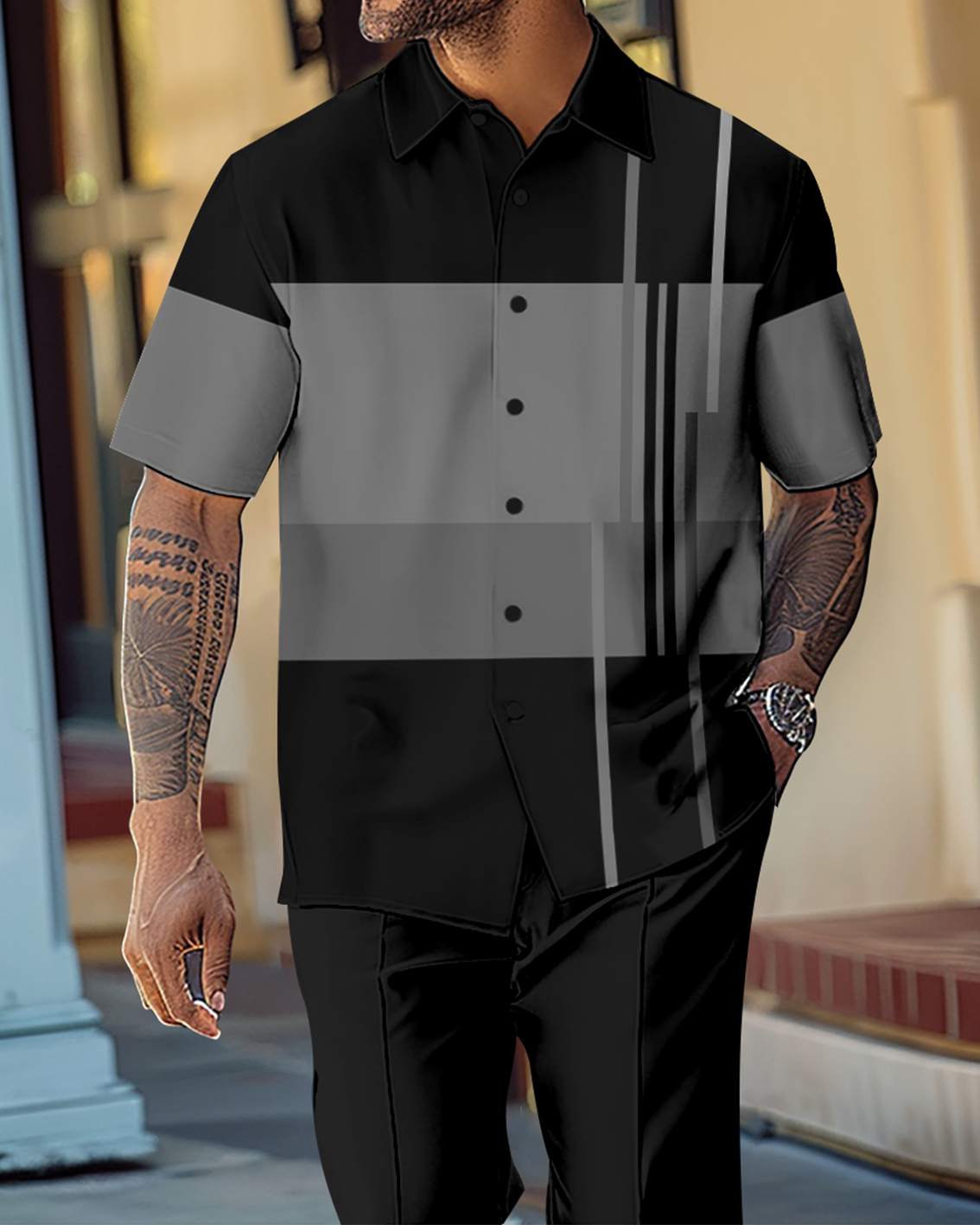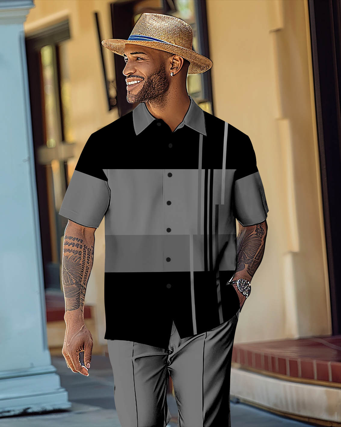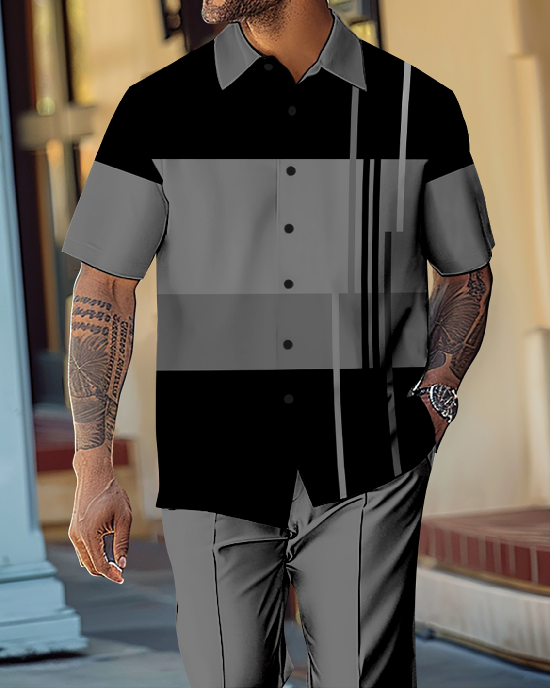 Men's Gradient Color Block Short Sleeve Shirt Walking Suit 1143