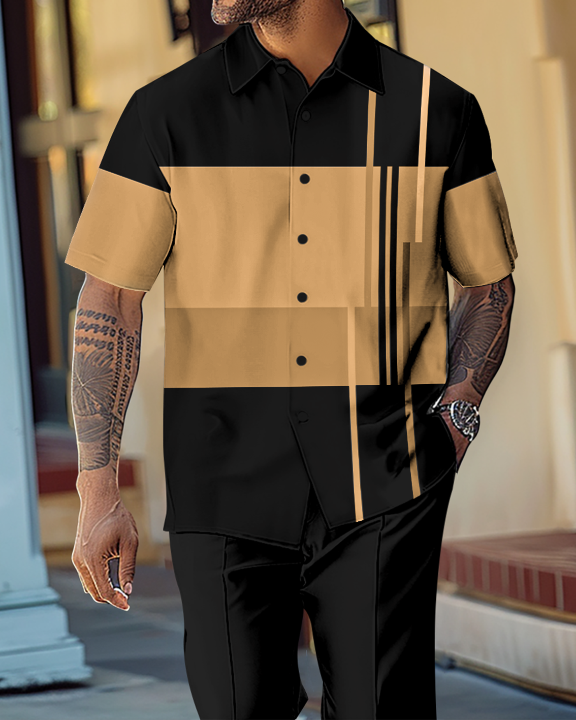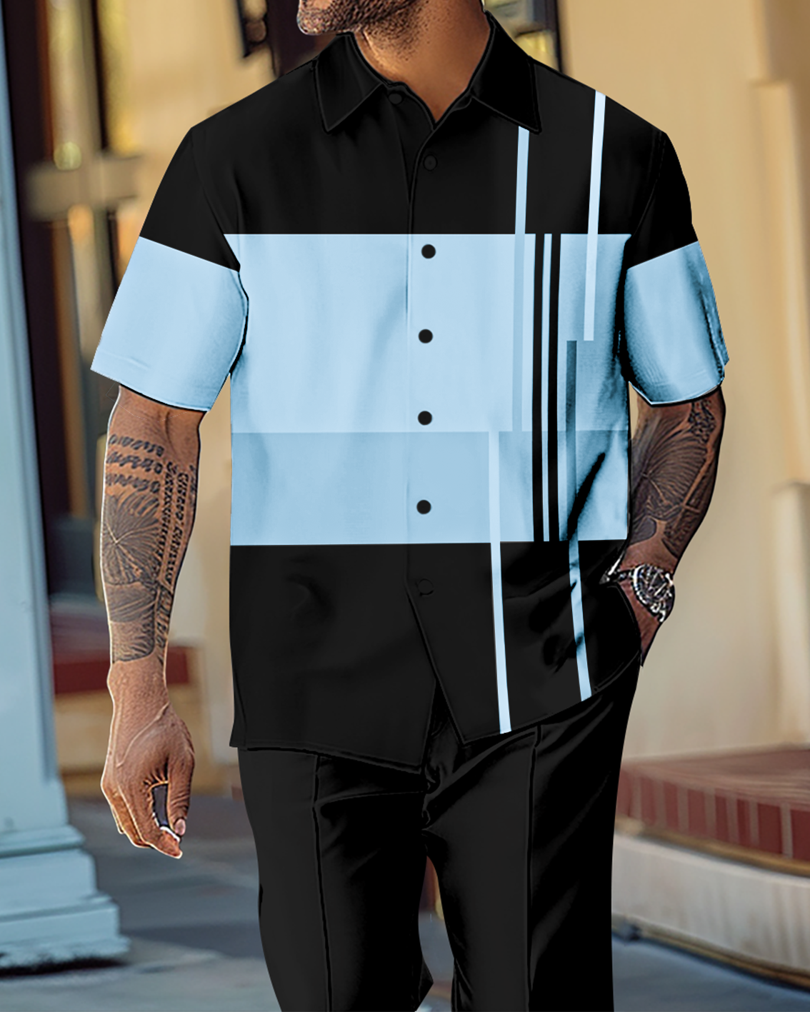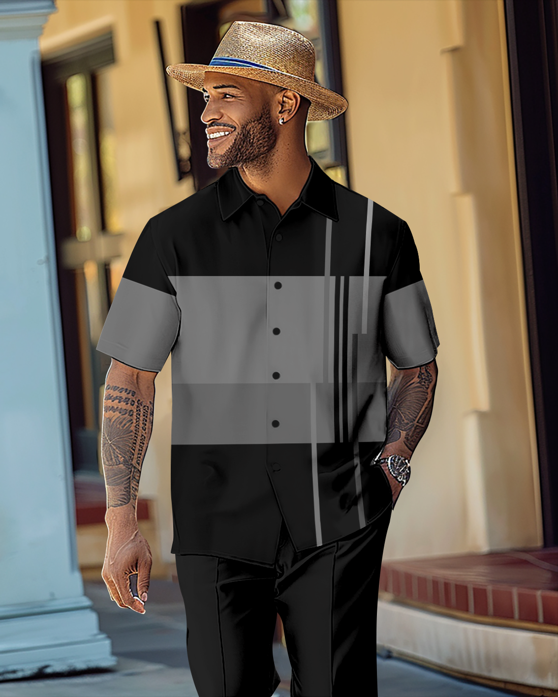 Men's Gradient Color Block Short Sleeve Shirt Walking Suit 1143