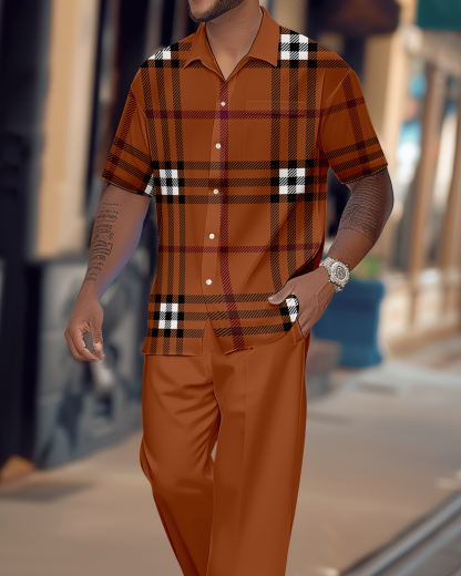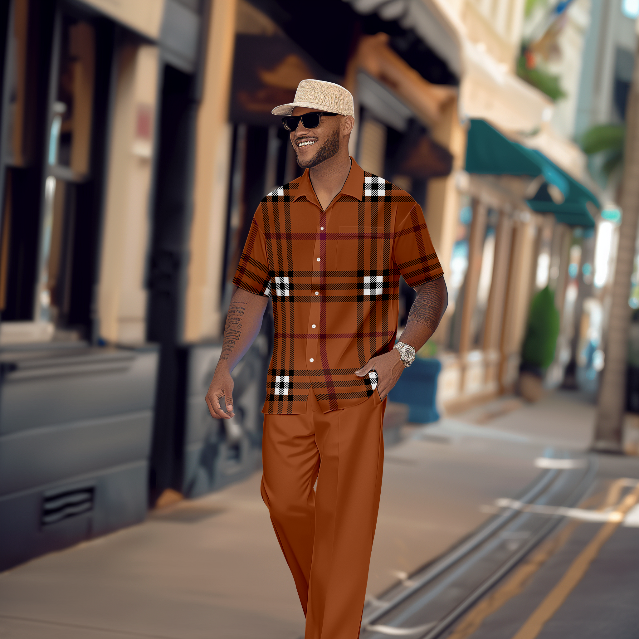 Men's Gradient Color Block Short Sleeve Shirt Walking Suit 1156