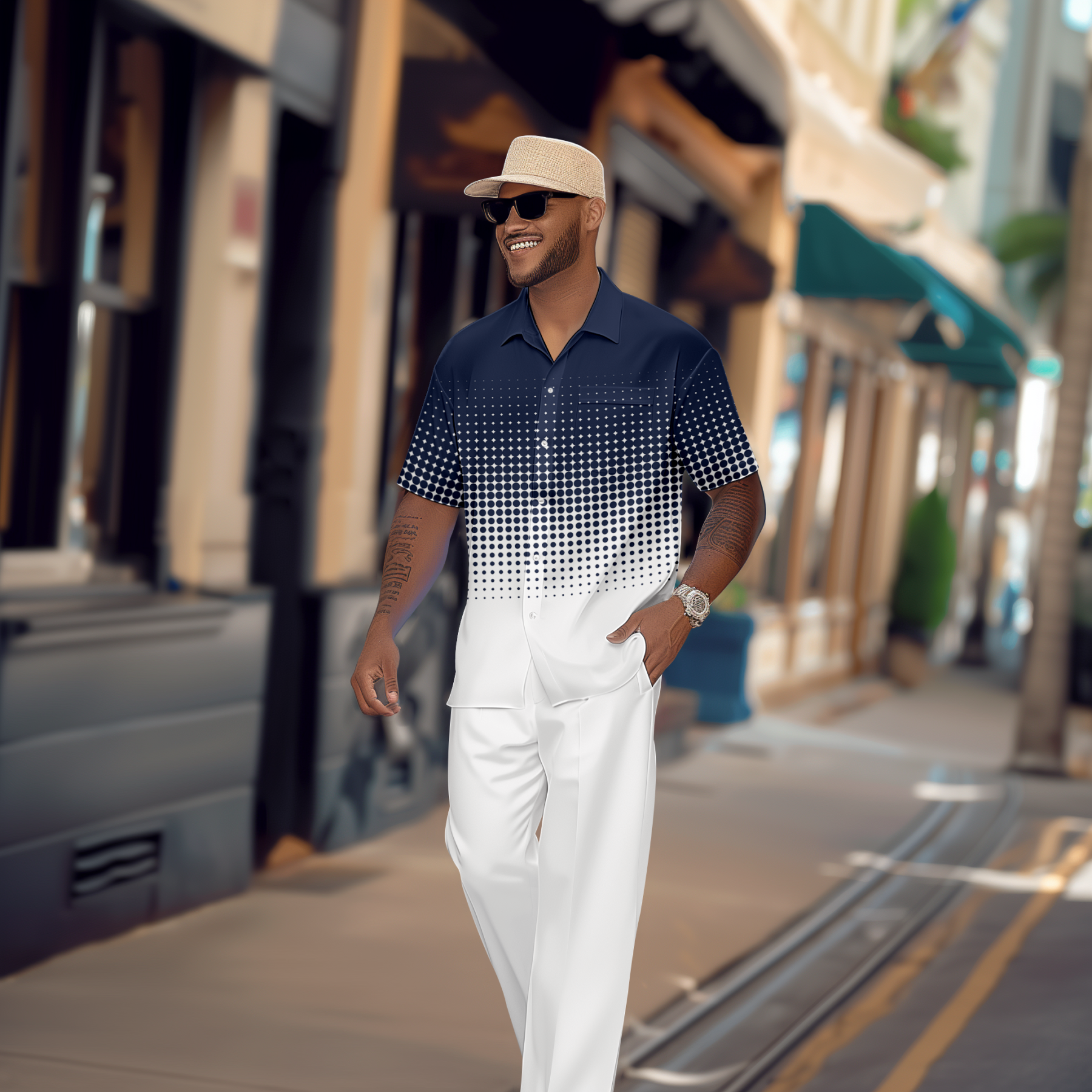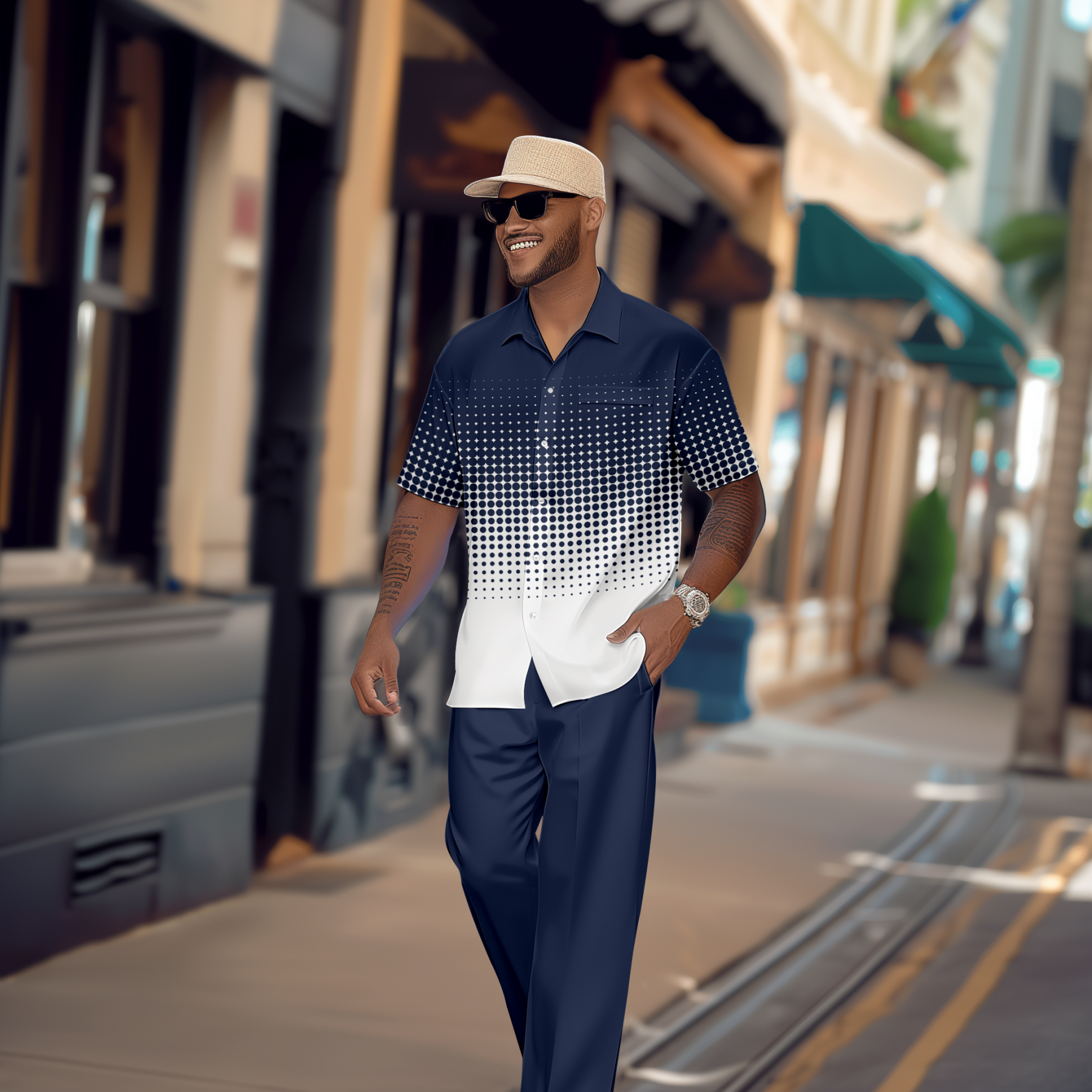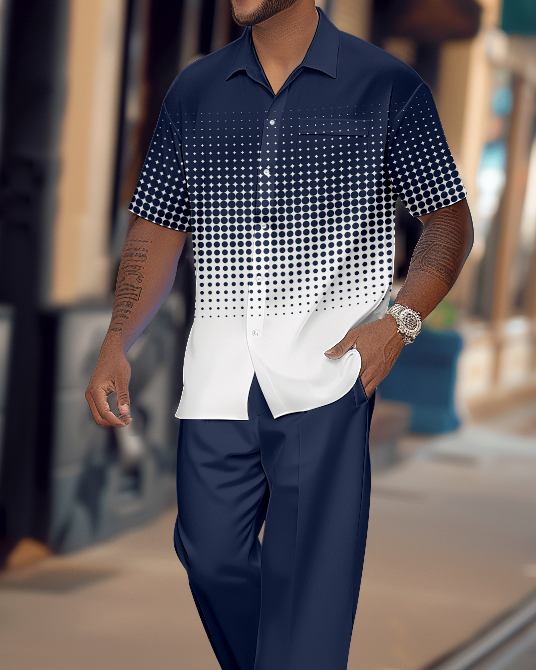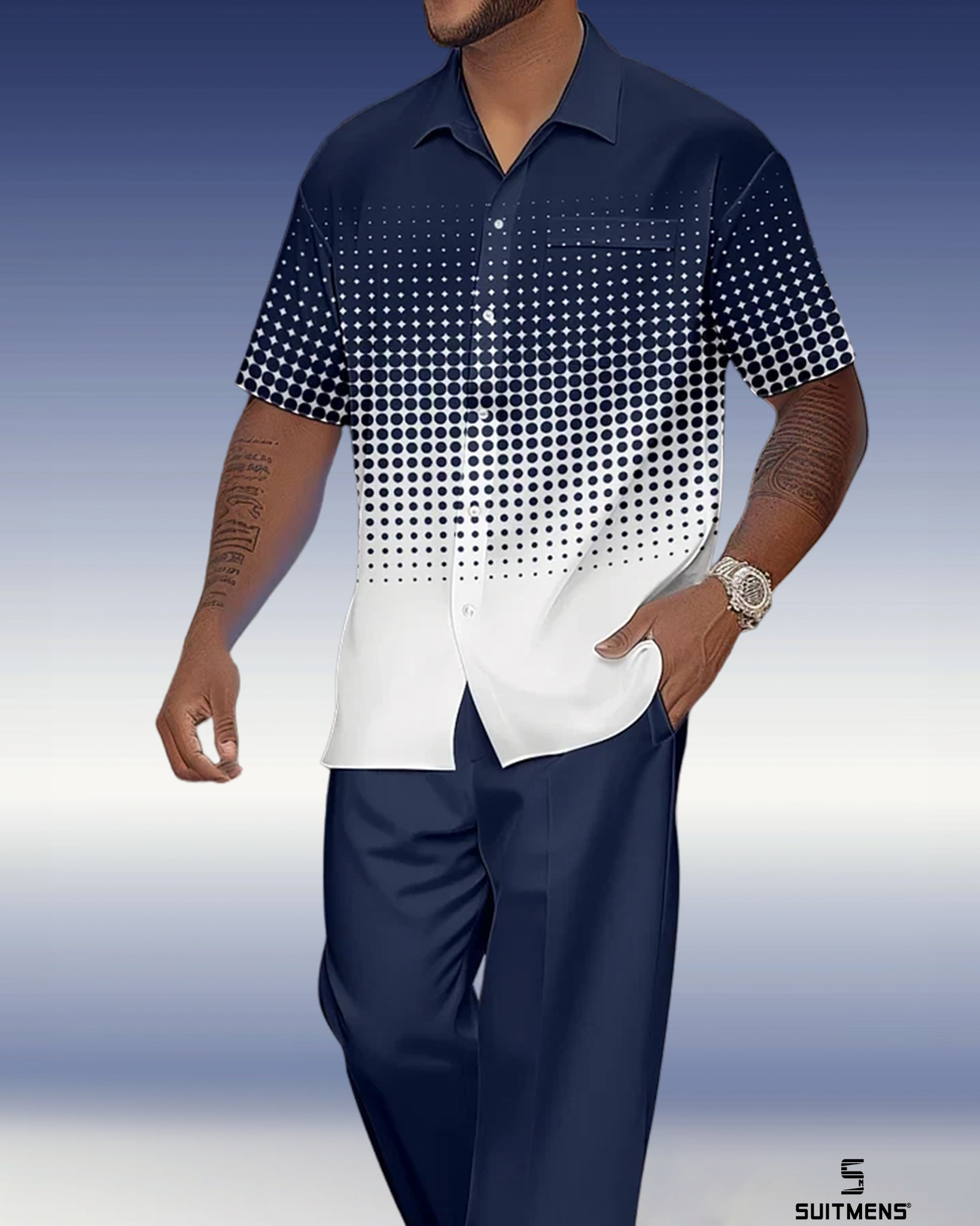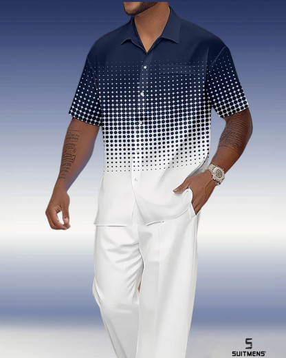 Men's Gradient Print Short Sleeve Shirt Walking Suit 1079