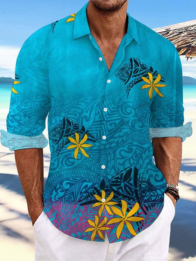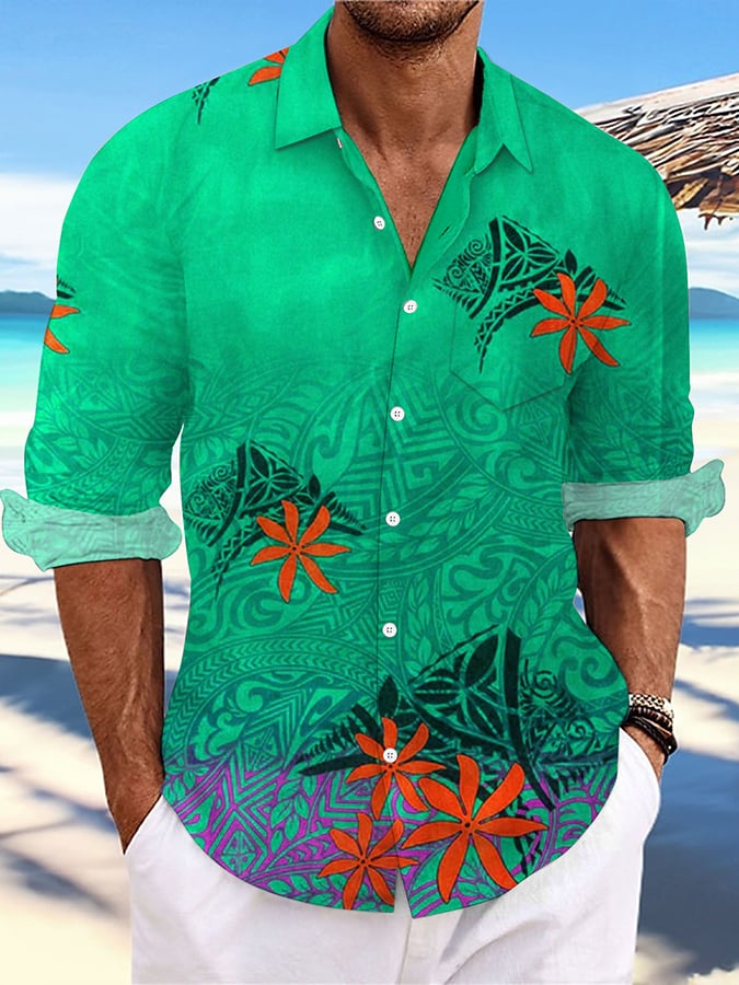 Men's Hawaii Print Fashion Vacation And Casual Shirt (With Pockets)