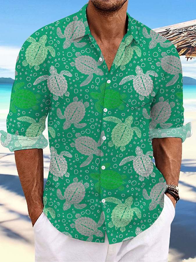 Men's Hawaii Turtles Print Fashion Vacation And Casual Shirt (With Pockets)