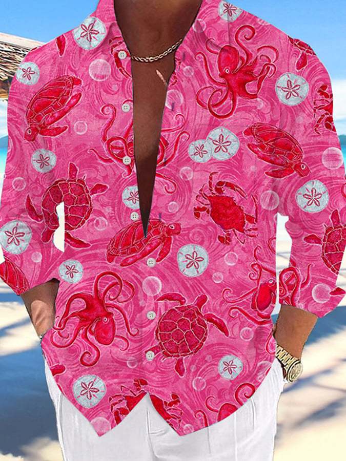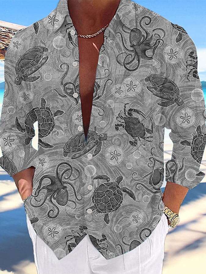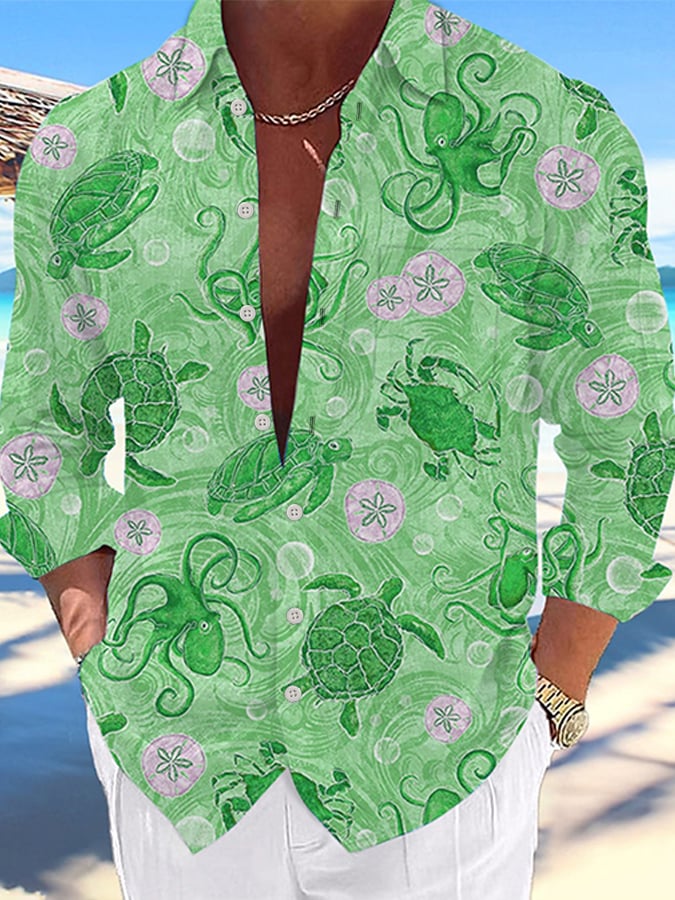 Men's Hawaii Turtles Print Fashion Vacation And Casual Shirt (With Pockets)