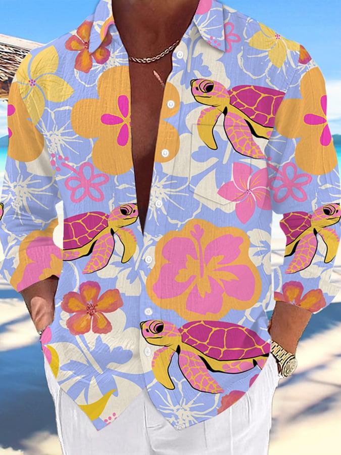 Men's Hawaii Turtles Print Fashion Vacation And Casual Shirt (With Pockets)
