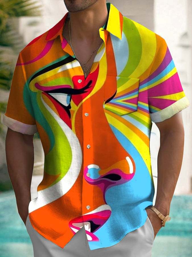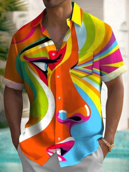 Men's Hawaiian Abstract Print Fashion Short Sleeve Shirt