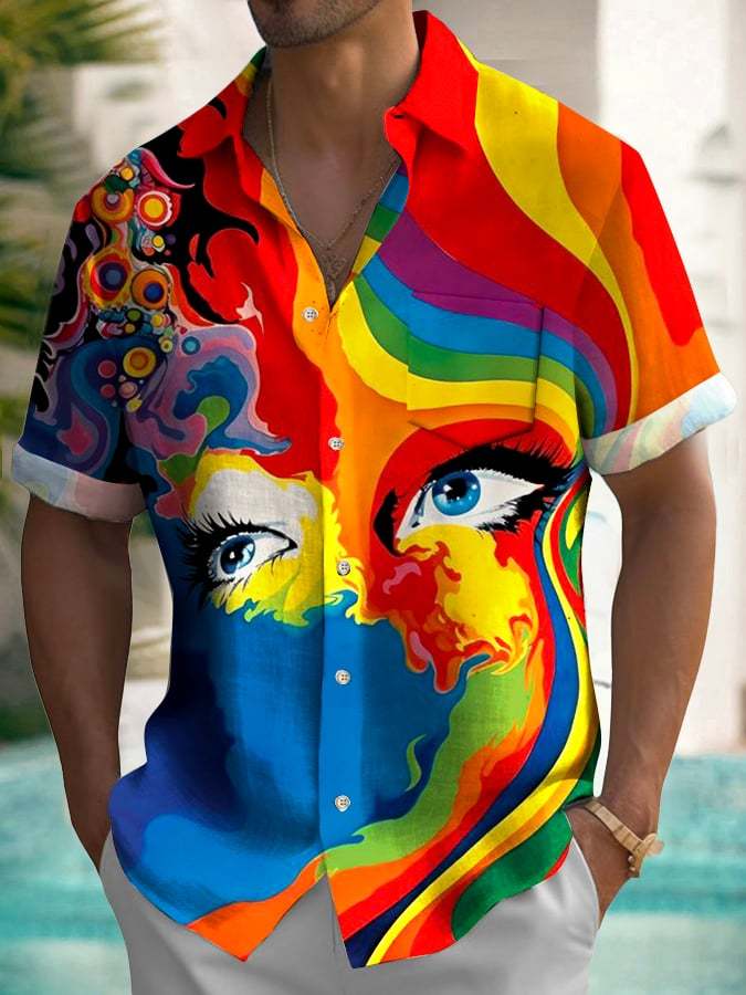 Men's Hawaiian Abstract Print Fashion Short Sleeve Shirt