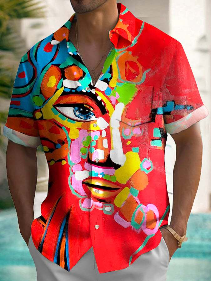 Men's Hawaiian Abstract Print Fashion Short Sleeve Shirt
