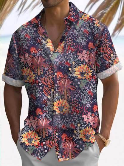 Men's Hawaiian Botanical Floral Print Fashion Short Sleeve Shirt