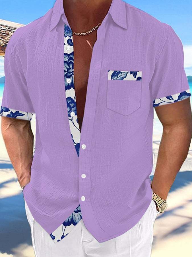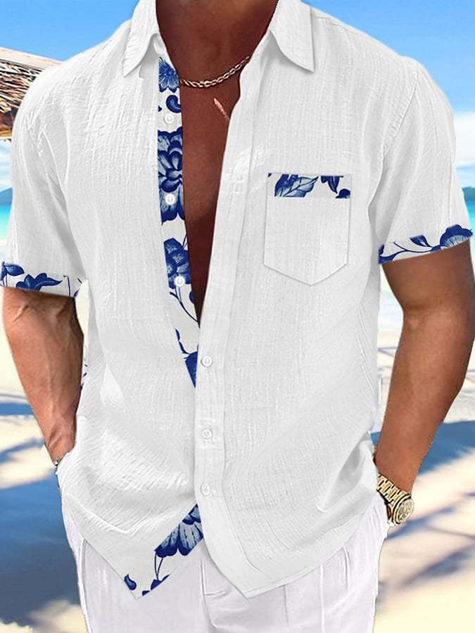 Men's Hawaiian Print Fashionable Resort Casual Shirt (With Pockets)