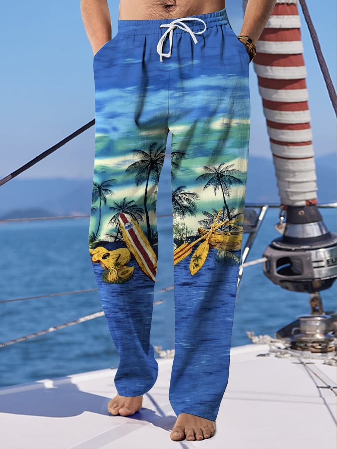 Men's Hawaiian Print Fashionable Resort Lounge Pants