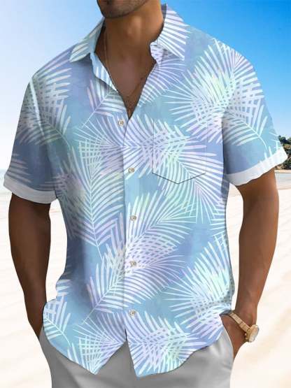 Men'S Hawaiian Tropical Leaves Floral Ombre Beach Print Shirt