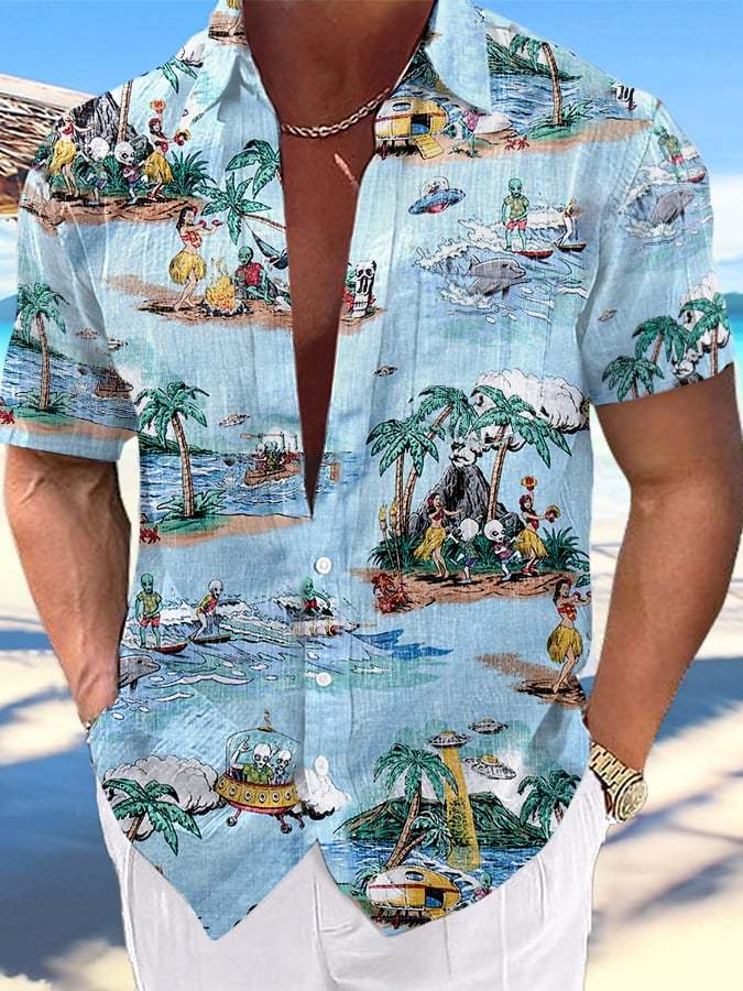 Men's Hawaiian Vacation Print Fashion Short Sleeve Shirt