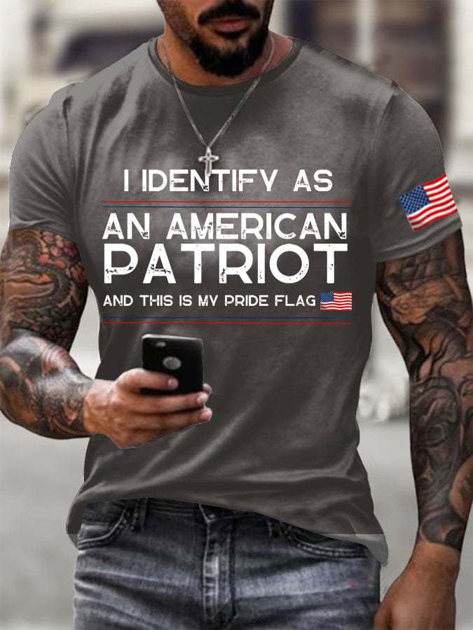 Men's I Identify As An American Printed Round Neck T-Shirt