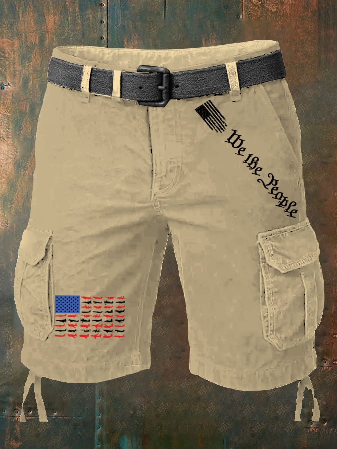 Men's Independence Day Vintage American Graphic Print Textured Casual Cargo Shorts