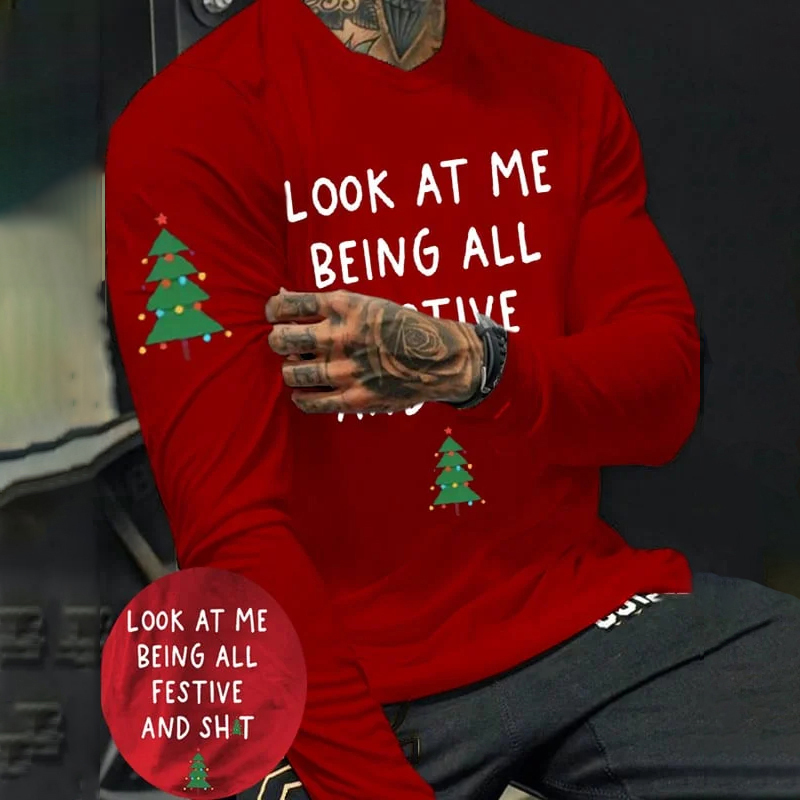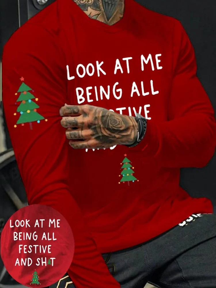 Men's Look At Me Being All Festive And Sh*t Print Round Neck T-Shirt