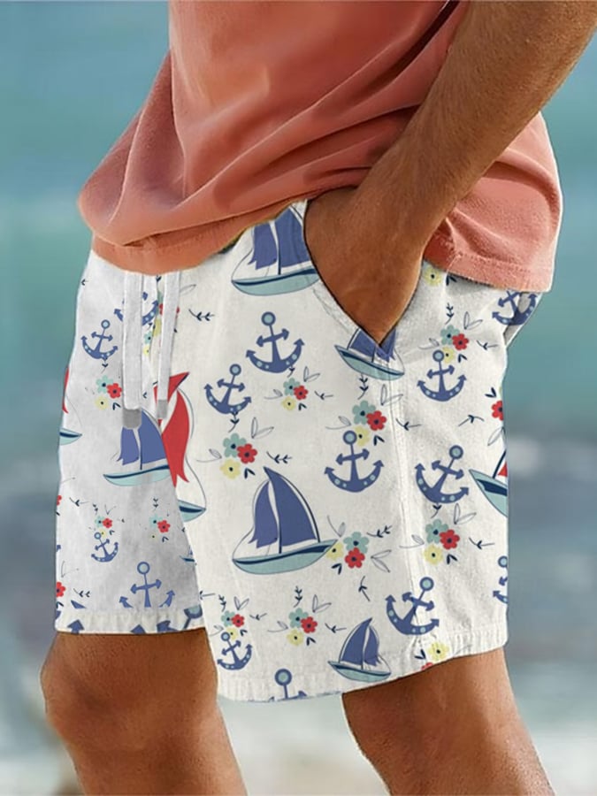 Men's Nautical Print Lace Up Elastic Waist Shorts