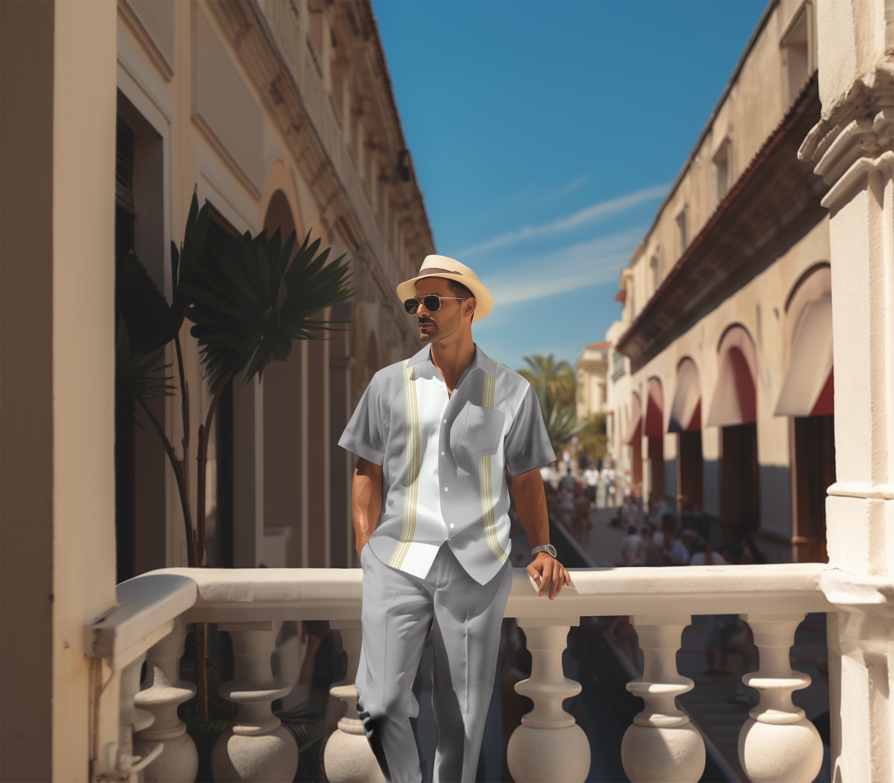 Men's retro colorblock short-sleeved shirt walking Suit 1650