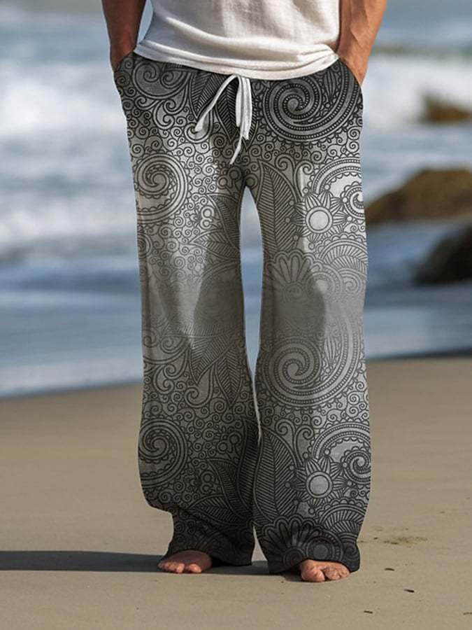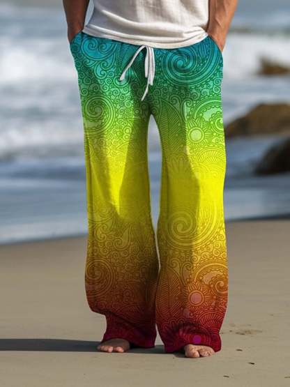 Men's Retro Gradient Print Lace-Up Loose Casual Pants
