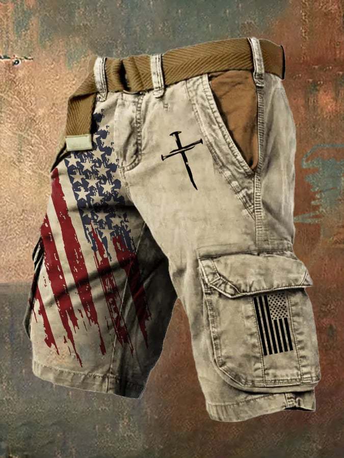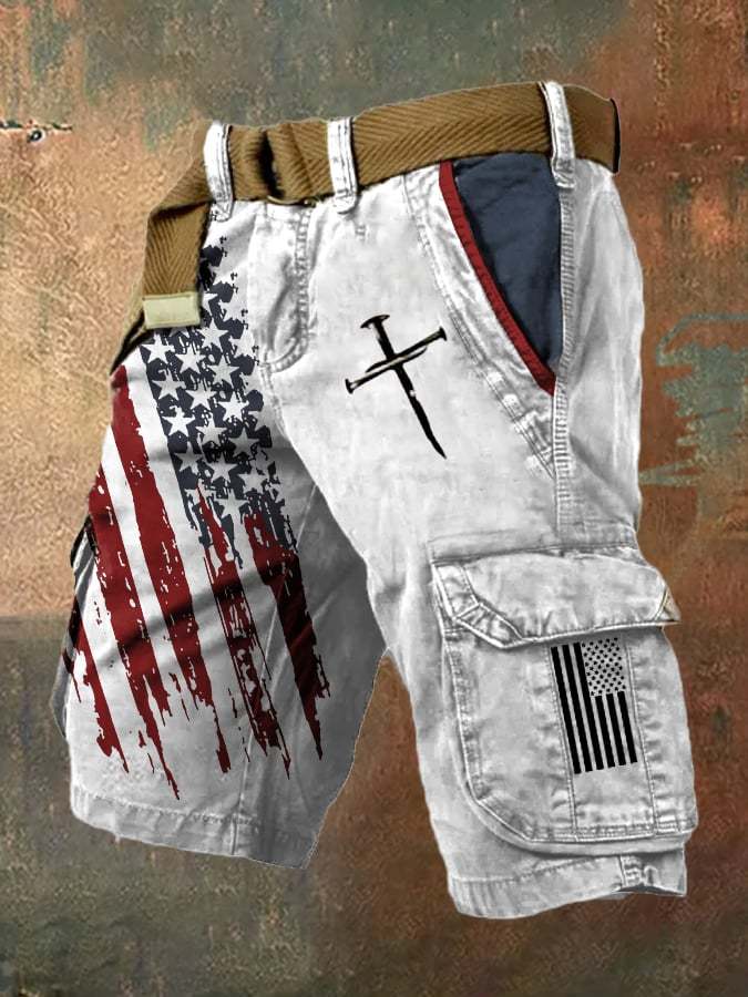 Men's Retro Independence Day Flag Print Cargo Shorts