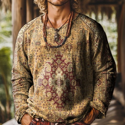 Men's Retro National Totem Print Round Neck Long Sleeve Cotton Shirt