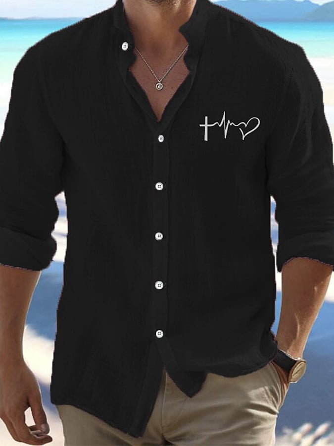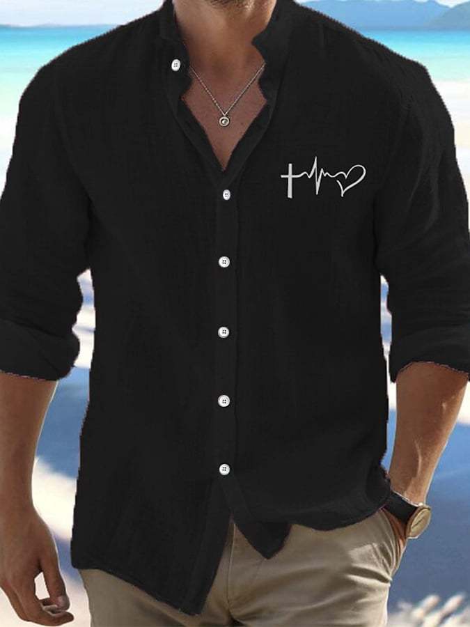 Men's Valentine's Day Heart Print Fashion Casual Shirt